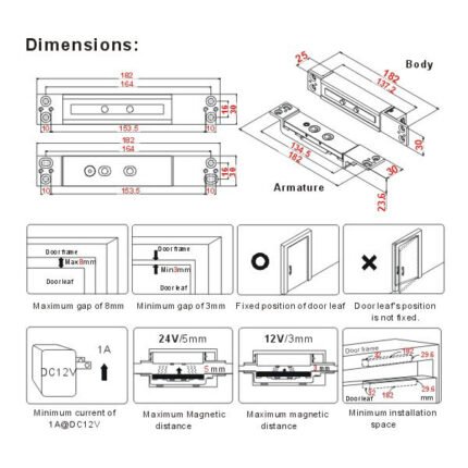 SL- 100D Power supply: DC 12V Without door position detection output SL- 100DA Power supply: DC 12V With N.O. door position detection output Note:SL-100D has its own micro-computer control and detection. It is strongly suggested to use its own door open point (N.O. point) to open door and do not turn its power off (N.C. point) to open door.